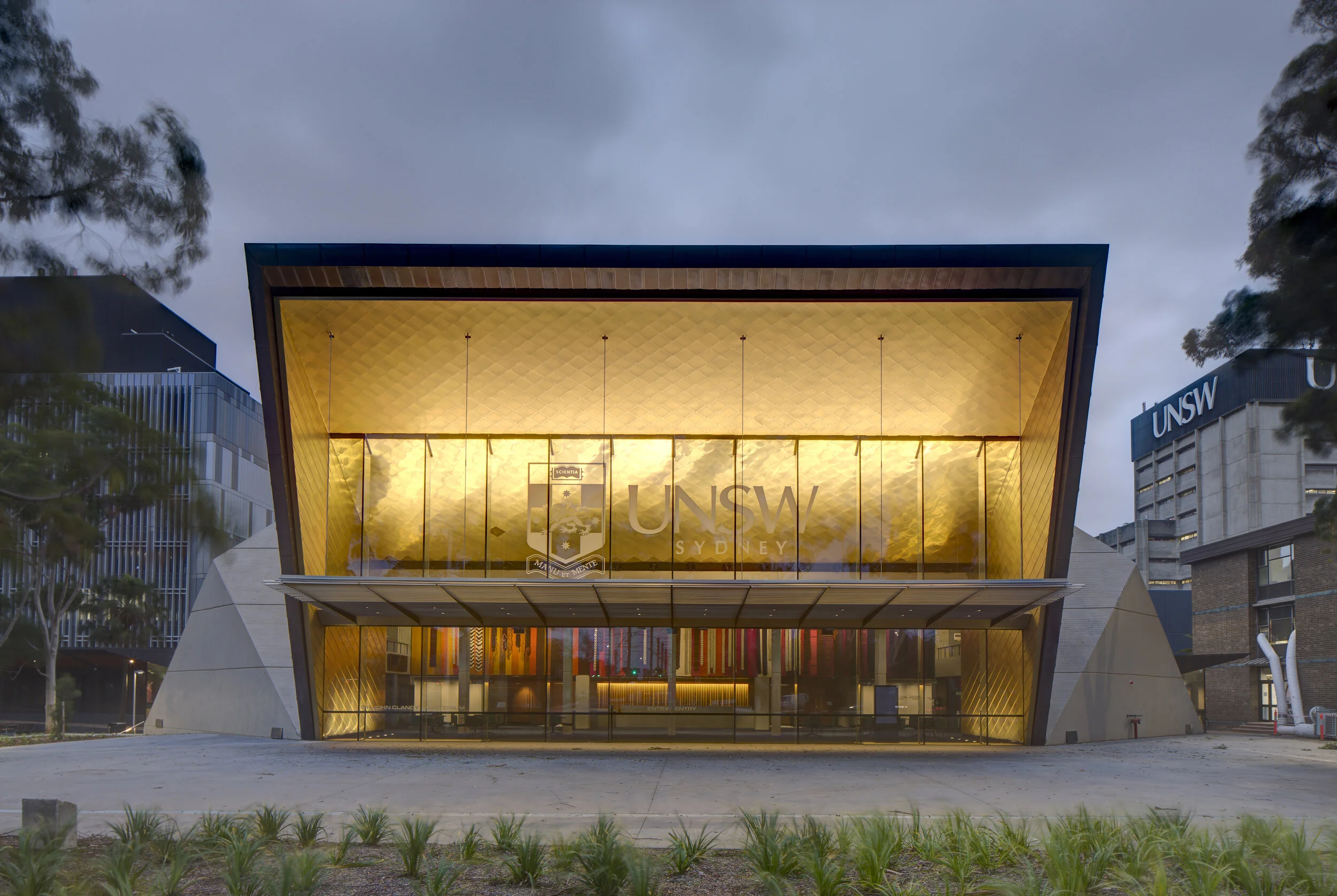 The Sir John Clancy Auditorium is UNSW’s ‘Home of Ceremony’ and Graduation and was designed in the 1970’s as a building in the round with a strong sculptural form representative of its brutalist era. The project objective was to expand the capacity of the undersized foyer, maximizing its functionality as well as create a new “front door” for the upper campus.